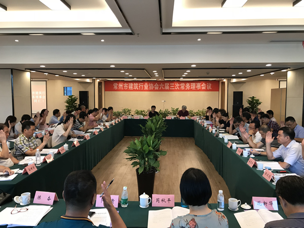 觀摩結(jié)束后,在集團(tuán)會(huì)議室聽(tīng)取了常州市建筑行業(yè)協(xié)會(huì)和檢測(cè)分會(huì)的2018年上半年工作總結(jié)和下半年工作計(jì)劃,審議并通過(guò)了關(guān)于成立建筑產(chǎn)業(yè)現(xiàn)代化分會(huì)的申請(qǐng)、分會(huì)工作規(guī)程等事項(xiàng)。
