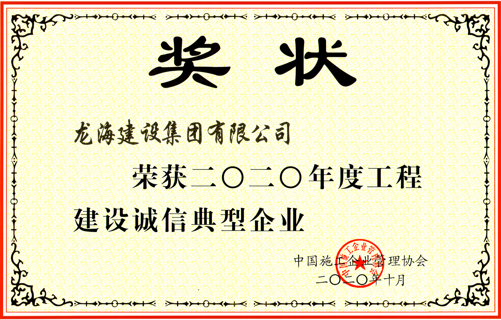 12月4日上午,中國施工企業(yè)管理協(xié)會(huì)在廣西南寧召開《2020年度工程建設(shè)誠信企業(yè)推介大會(huì)》,公司再次榮獲“工程建設(shè)誠信典型企業(yè)”榮譽(yù)稱號。