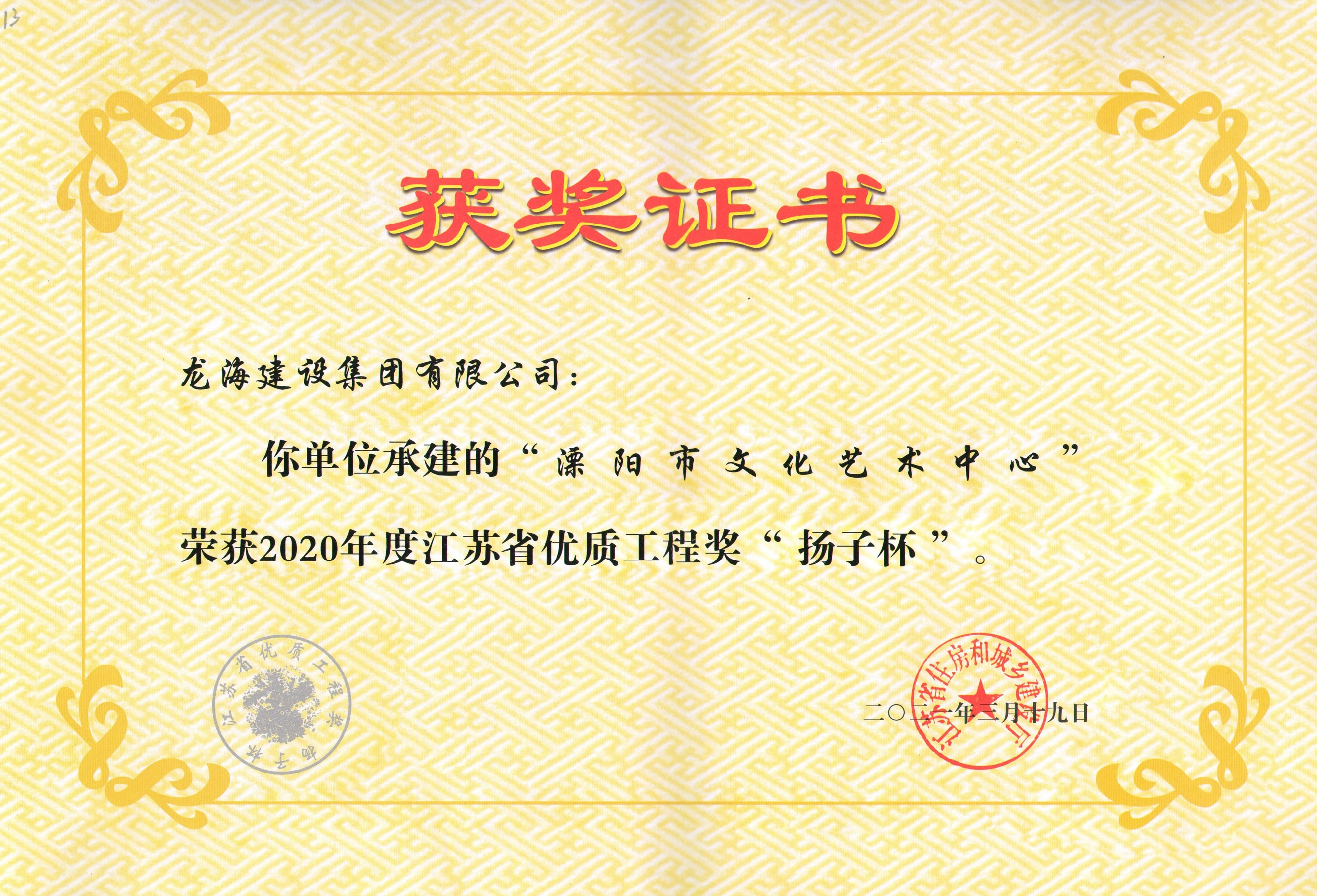 近日,我司承建的“溧陽市文化藝術(shù)中心”喜獲2020年度江蘇省優(yōu)質(zhì)工程獎“揚子杯”。該獎為江蘇省建筑工程質(zhì)量最高榮譽獎,由江蘇省住房和城鄉(xiāng)建設(shè)廳組織,江蘇省建筑行業(yè)協(xié)會等單位參與評選。