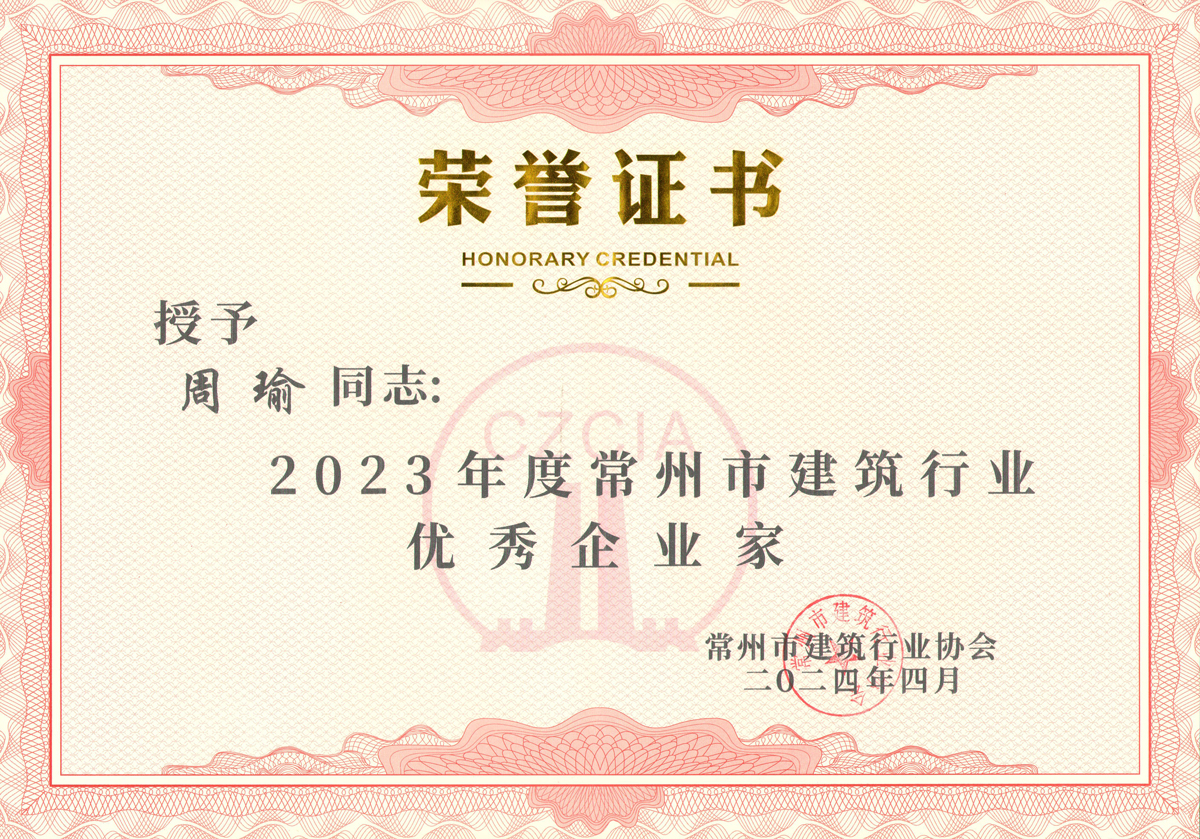 公司榮獲2023年度常州市建筑業(yè)優(yōu)秀企業(yè)榮譽(yù)稱號(hào)